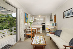 Tucked into a peaceful pocket of Gisborne Point, this much-loved duplex offers a wonderfully simple escape. Elevated slightly above its neatly kept grounds, the home feels light, bright, and timeless. Inside, the open living and dining area captures leafy outlooks toward the lake and surrounding bush, enhancing the cottage-like charm. Sliding doors extend the living space seamlessly outdoors, allowing the deck to function as a natural extension of the home. Two sunlit bedrooms sit peacefully to the rear, accompanied by the bathroom with separate toilet. Positioned on 1/2 share of 1,012sqm the home also includes a single garage, ideal for storing the boat, kayaks and fishing gear. With both Gisborne Point boat ramps nearby, lake access couldn't be easier. Whether seeking a starter bach, or a peaceful downsize, 57B Wharetoroa Drive delivers an inviting blend of comfort and simplicity.